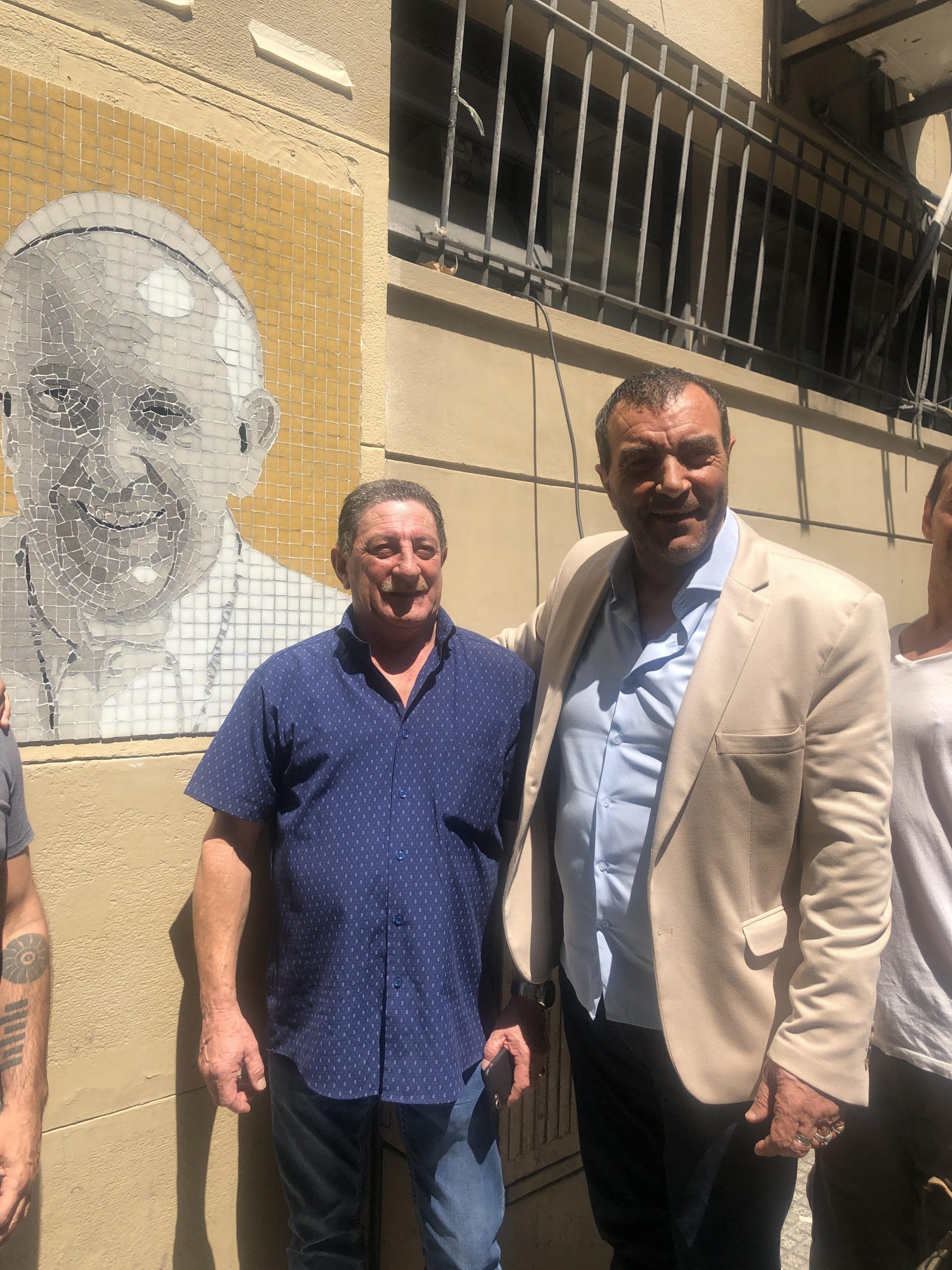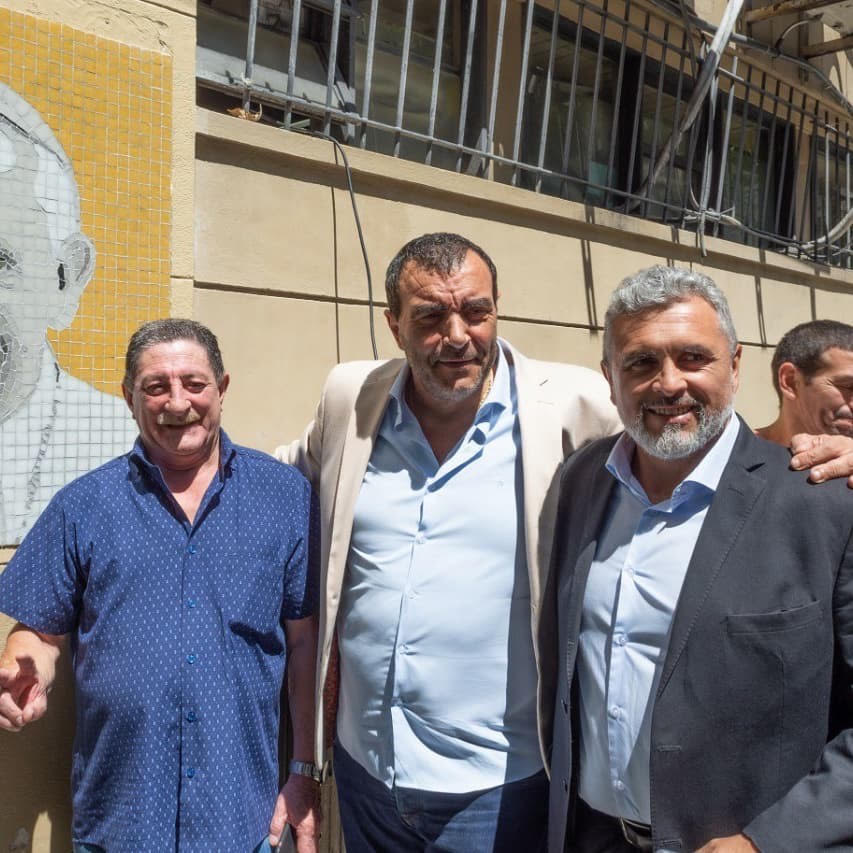En la inauguración del mural Di Próspero estuvo acompañado por el secretario general del Sindicato de Peones de Taxis, Omar Viviani, el cura de Opción por los Pobres, Francisco “Paco” de Oliveira, dirigentes sociales y religiosos, el ex embajador en Uruguay y diputado nacional MC, Dante Dovena, el ex embajador ante el Vaticano y actual diputado nacional Eduardo Valdés, diplomáticos y la comisión directiva de APL.